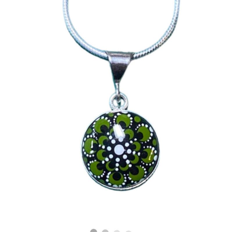 Sterling Silver round 12 mm round bail, 9x5 mm loop bail and 18” Sterling Silver Chain.