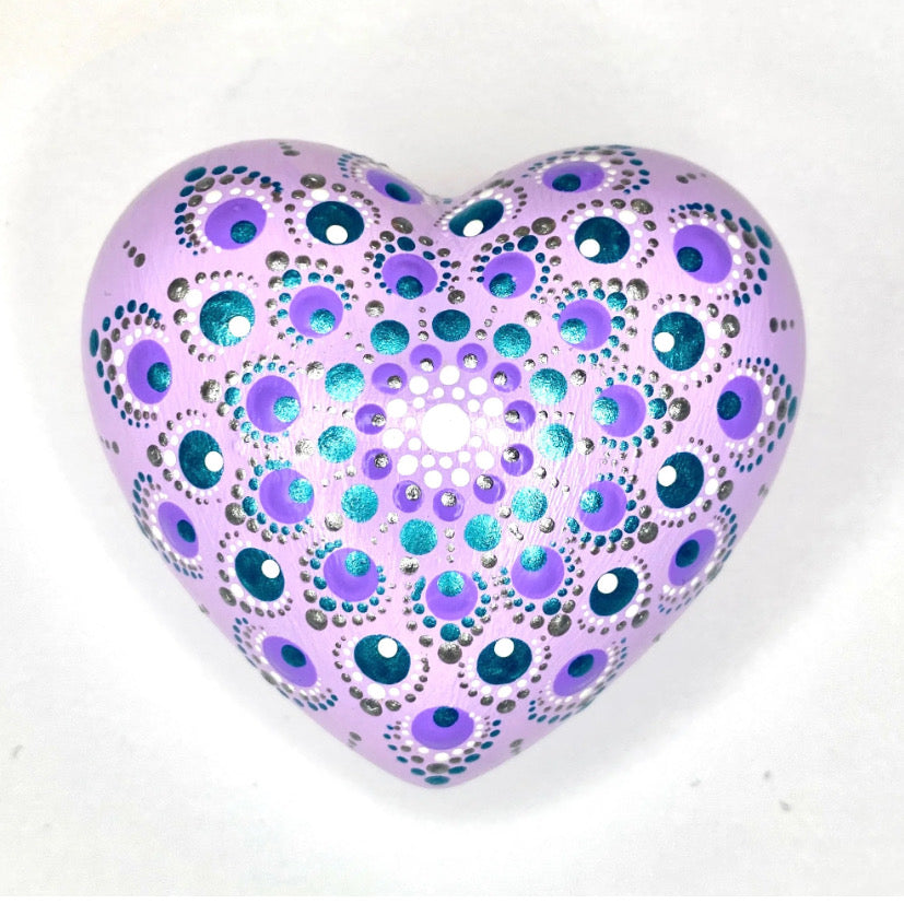 This Purple Heart features a unique, hand painted heart mandala design using high-quality acrylic paint. Perfect for mindfulness and as a thoughtful gift.
