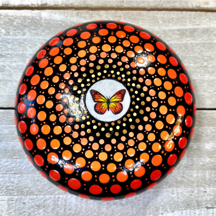 Elevate your mindfulness practice with our Butterfly Mandala. This hand-painted mandala features a beautiful butterfly design and includes descriptive cards for a deeper understanding. Crafted with precision and care, this piece exudes tranquility and promotes a sense of calm.