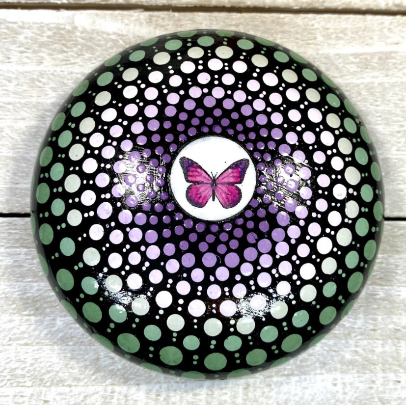 Elevate your mindfulness practice with our Butterfly Mandala. This hand-painted mandala features a beautiful butterfly design and includes descriptive cards for a deeper understanding. Crafted with precision and care, this piece exudes tranquility and promotes a sense of calm.