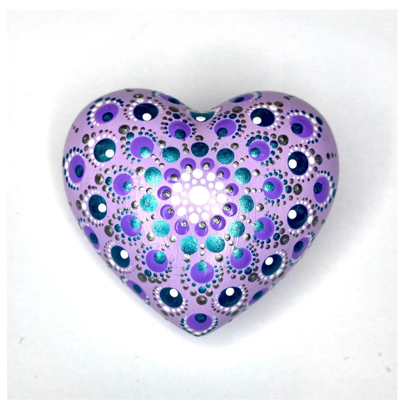This Purple Heart features a unique, hand painted heart mandala design using high-quality acrylic paint. Perfect for mindfulness and as a thoughtful gift.